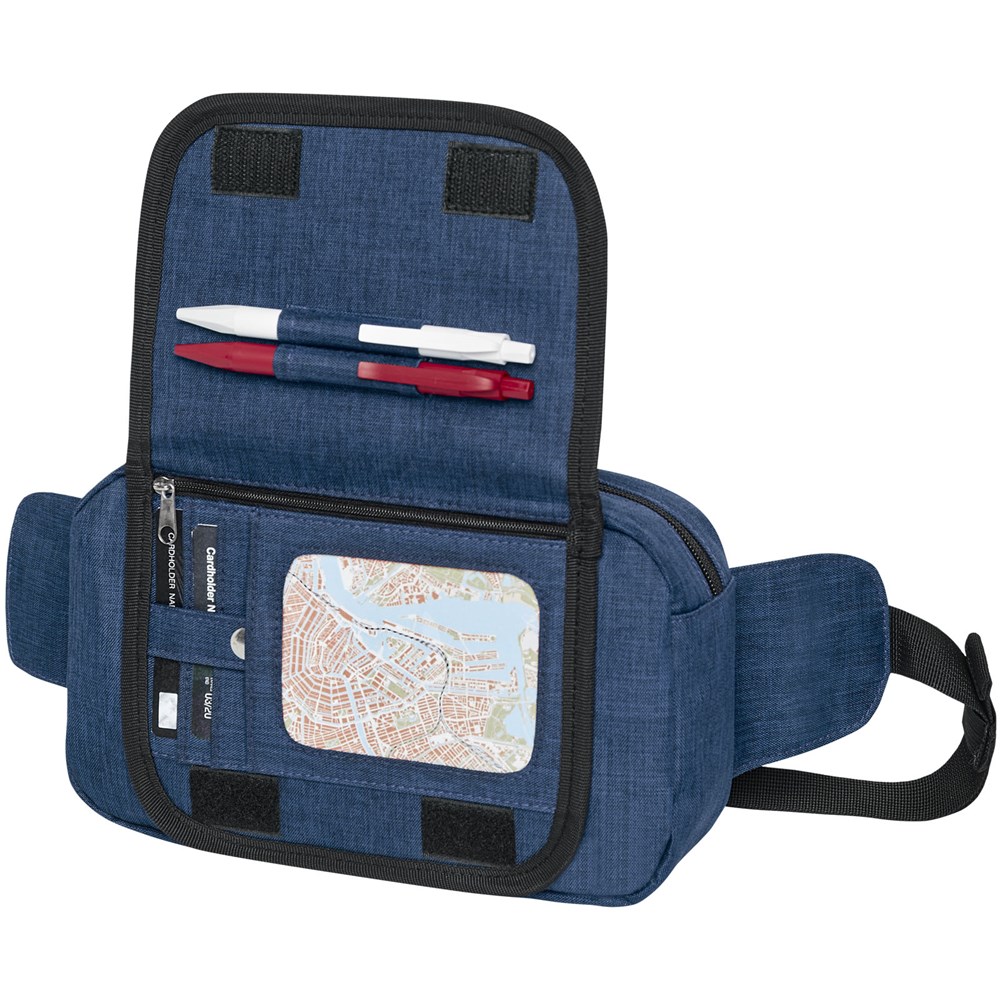 Große Gürteltasche mit meliertem Farbeffekt. Ausgestattet mit einem Hauptfach mit Reißverschluss und einem geschlossenem Frontfach mit Klettverschluss, in dem Karten, Stifte oder andere kleine Gegenstände aufbewahrt werden können. Die Tasche hat einen verstellbaren Hüftgurt mit Schnellverschluss. Es kann zu geringfügigen Farbveränderungen des eigentlichen Produkts kommen, die auf die Beschaffenheit der Gewebefarbstoffe, Gewebe und Drucke zurückzuführen sind.