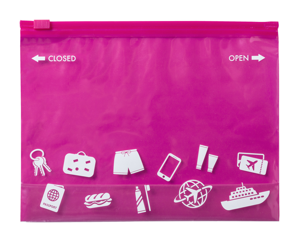 Mehrzwecktasche mit Reißverschluss, transparenter Vorderseite und farbiger Rückseite. mehr