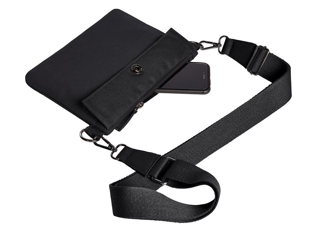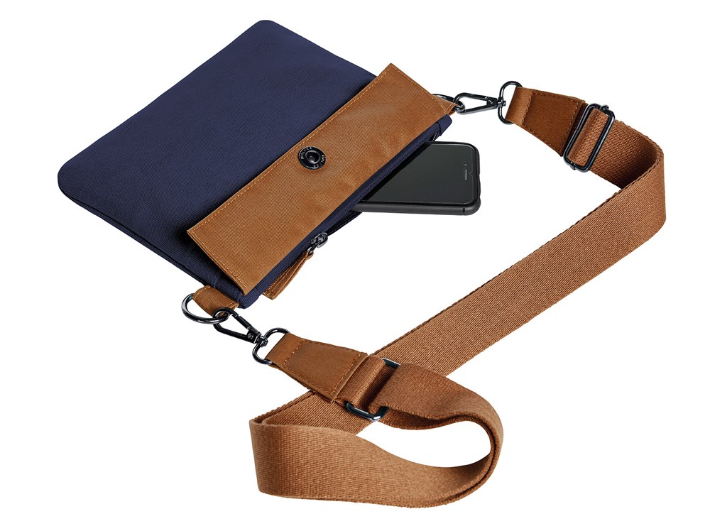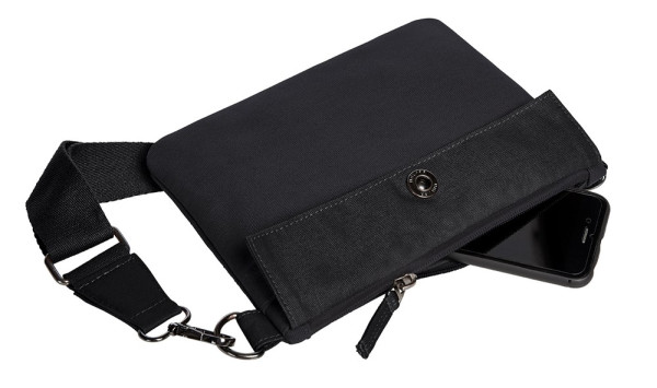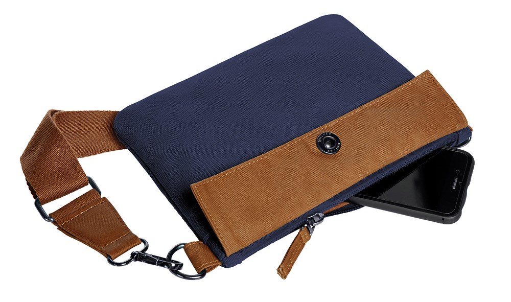 moderne, aufwändig verarbeitete Reißverschluss-Tasche; liebevoll gestaltet mit wertigen Metallaccessoires; Hauptfach mit Reißverschluss; Vortasche verschließbar mit Druckknopf; breiter, längenverstellbarer und abnehmbarer Baumwoll-Umhängegurt