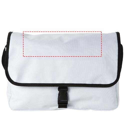 Schultertasche mit offenem Hauptfach, wird mit einer Klappe mit Schnallenverschluss verschlossen. Verstellbarer Schulterriemen.