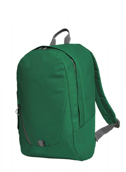 moderner Rucksack mit Reißverschluss-Vortasche; Hauptfach mit 2-Wege-Reißverschluss und flachem Einsteckfach innen; Regenklappe; Reflektor-Streifen vorne, Rücken und Schultergurte gepolstert; Handgriff
