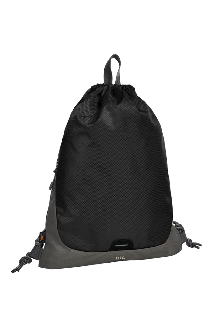 großer Zugbeutel-Rucksack; Hauptfach mit seitlicher Reißverschluss-Tasche; Reflektor-Streifen; Kordelzug; Trageschlaufe