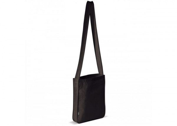 Umhängetasche aus Non-Woven mit einem langen, breiten Riemen.