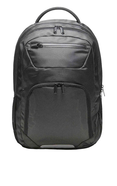 aufwändig gearbeiteter Notebook-Rucksack mit Reflex-Besatz; gepolsterter Handgriff; Hauptfach mit 2-Wege-Reißverschluss; Notebookfach; Vortasche mit 2-Wege-Reißverschluss und Organizer; Reißverschluss-Tasche mit Velours-Innenfutter und wasserabweisendem Reißverschluss; seitliche Netzfächer; seitliche Reißverschluss-Tasche z.B. für Regenschirm; gepolsterter Boden und Rücken; gepolsterte Träger mit höhenverstellbarem Brustgurt
