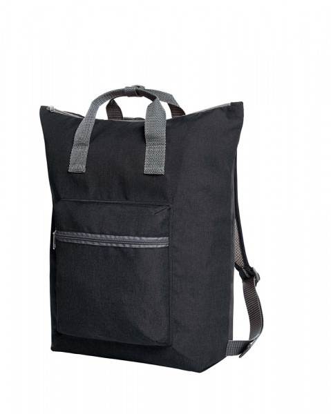 moderner Rucksackshopper; Hauptfach mit Reißverschluss; Reißverschluss-Vortasche; Reißverschluss-Innentasche; Handgriffe mit Druckknopfmanschette; längenverstellbares, atmungsaktives Tragesystem; Falt- und Verstaufunktion