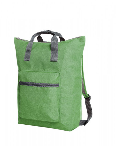 moderner Rucksackshopper; Hauptfach mit Reißverschluss; Reißverschluss-Vortasche; Reißverschluss-Innentasche; Handgriffe mit Druckknopfmanschette; längenverstellbares, atmungsaktives Tragesystem; Falt- und Verstaufunktion
