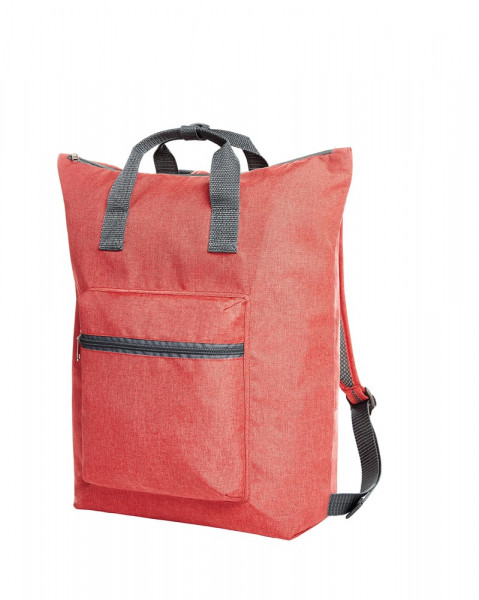 moderner Rucksackshopper; Hauptfach mit Reißverschluss; Reißverschluss-Vortasche; Reißverschluss-Innentasche; Handgriffe mit Druckknopfmanschette; längenverstellbares, atmungsaktives Tragesystem; Falt- und Verstaufunktion