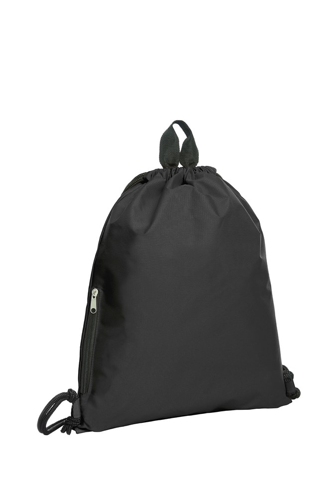 großer Zugbeutel-Rucksack; Hauptfach mit seitlicher Reißverschluss-Tasche; Kordelzug; Trageschlaufe