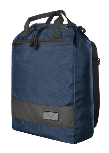 moderner Rucksackshopper mit Kontraststreifen; HFL®-Träger für Ihr Logo; Hauptfach mit dekorativem Kordelverschluss und zusätzlichem Druckknopfverschluss; große Reißverschluss-Vortasche; flaches Einsteckfach innen; Handgriffe mit Druckknopfmanschette; längenverstellbares Tragesystem