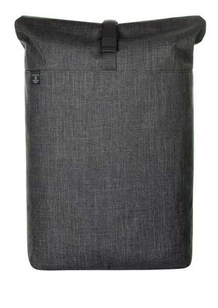 urbaner Rucksack mit Magnet- und Wickelverschluss; geräumiges Hauptfach mit gepolstertem Notebookfach; rPET Obermaterial; rückseitige Reißverschlusstasche; aufwändig gepolsterter Rücken mit verstecktem Reißverschlussfach; gepolsterter Boden; längenverstellbare gepolsterte Schultergurte mit Gummischlaufen zum Befestigen von z.B. Sonnenbrille; Handgriff