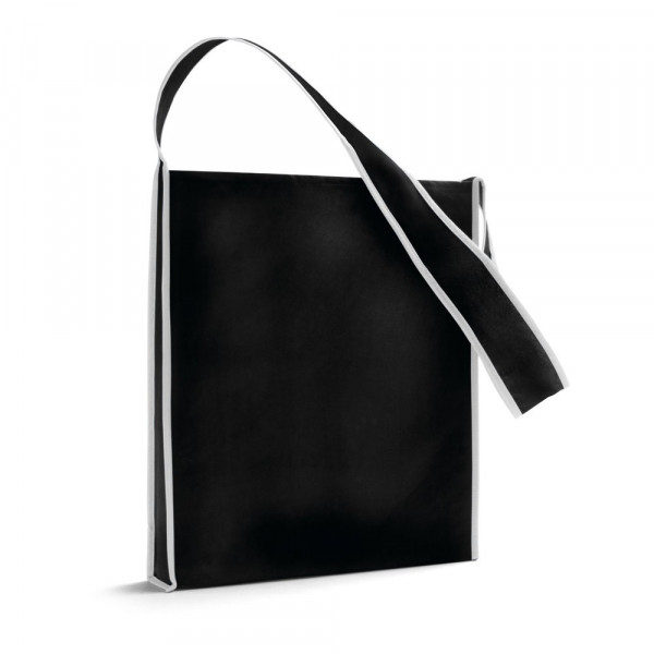 Schultertasche aus Non Woven (80 g/m²) mit einem 95 cm langen Schultergurt. Ideal als Dokumententasche. 350 x 390 x 60 mm