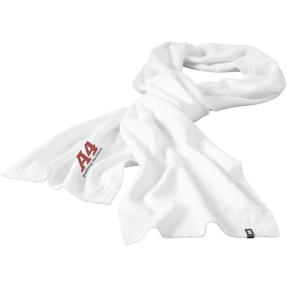 Doppellagiger Schal. Schlauchware. Schlaufenetikett mit Markenlogo.