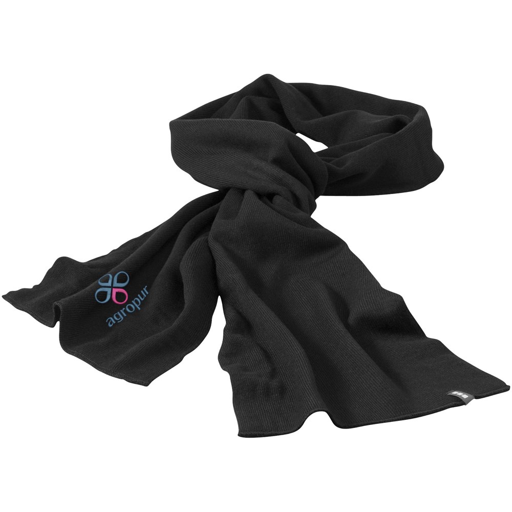 Doppellagiger Schal. Schlauchware. Schlaufenetikett mit Markenlogo.