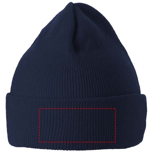 Einlagige Mütze mit doppelt gefaltetem Rand. Kopfumfang: 58 cm.