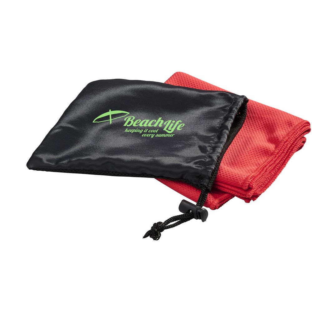 Schnell einziehendes, schnell trocknendes und waschbares kühlendes Handtuch aus starkem und strapazierfähigem Polyester, perfekt um während des Trainings oder bei allen Outdoor-Aktivitäten kühl zu bleiben. Wird in einem kleinen Netzbeutel mit Verschluss für einfaches Tragen geliefert. Erhältlich in 5 frischen Farben. Große Dekorationsfläche auf dem Beutel, Dekoration auch auf dem Kühlhandtuch selbst möglich. Größe 30 x 80 cm.