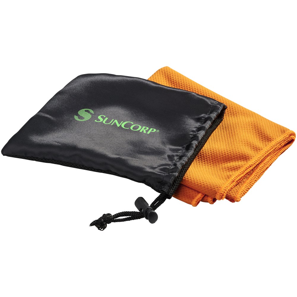Schnell einziehendes, schnell trocknendes und waschbares kühlendes Handtuch aus starkem und strapazierfähigem Polyester, perfekt um während des Trainings oder bei allen Outdoor-Aktivitäten kühl zu bleiben. Wird in einem kleinen Netzbeutel mit Verschluss für einfaches Tragen geliefert. Erhältlich in 5 frischen Farben. Große Dekorationsfläche auf dem Beutel, Dekoration auch auf dem Kühlhandtuch selbst möglich. Größe 30 x 80 cm.