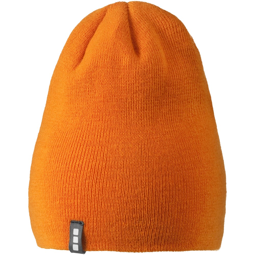 Doppellagiger Beanie. Schlaufenetikett mit Markenlogo.