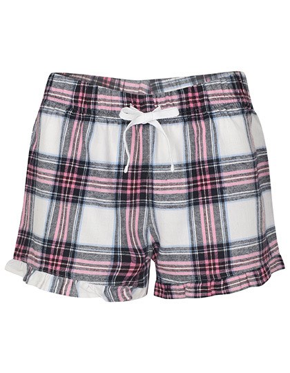 Gewebte Damenshorts mit Schottenmuster und Volants | Gummizug in der Taille mit gespielter Kordelzug | Abreißetikett