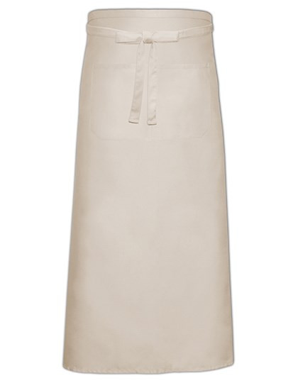 Klassische Bistroschürze wie Artikel X968 | Große Fronttasche (ca. 35 x 19 cm) | Sanforisiert | Farbecht | Extra verstärkt an kritischen Punkten | Pflegeleicht | Unbedruckt waschbar bis 60 °C | Durchgehender Gürtel in Schürzenstoff