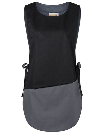 Köpergewebe, 215 g/m² | Hochveredelt, gekrumpft, waschecht, pflegeleicht | Überwurfkasack für Damen, mit Brustabnähern | 1 verdeckte Nahttasche | Seitlich zum Binden | Rückenlänge bei Gr. I ca. 82 cm | Industriewäschetauglich | Waschbar bis 60°C (Anthrazit bis 95°C)
