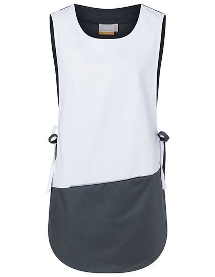 Köpergewebe, 215 g/m² | Hochveredelt, gekrumpft, waschecht, pflegeleicht | Überwurfkasack für Damen, mit Brustabnähern | 1 verdeckte Nahttasche | Seitlich zum Binden | Rückenlänge bei Gr. I ca. 82 cm | Industriewäschetauglich | Waschbar bis 60°C (Anthrazit bis 95°C)