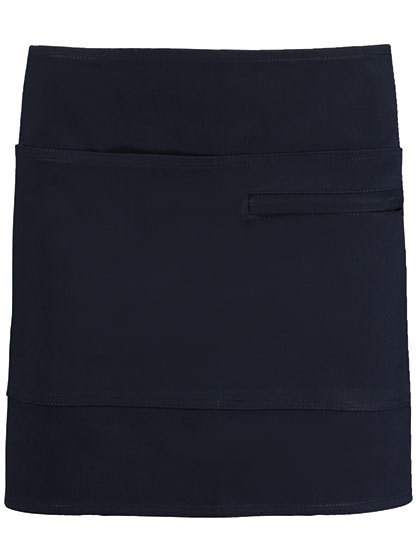 Baumwoll-Twill | Zwei Taschen vorne mittig | Eine Reißverschluss- und eine offene Tasche | Stoffbänder zum Binden aus identischem Material | Superwash 60 °C