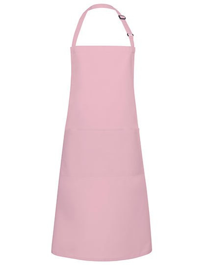 Köpergewebe, 215 g/m² | Latzschürze mit Bändern aus Schürzenstoff, mit Nahtsicherung | Latzband mit Schnalle zum stufenlosen Einstellen der Länge bis 70 cm | Aufgesetzte Tasche mit 2 Fächern (40 x 20 cm) | Waschbar bis 60°C