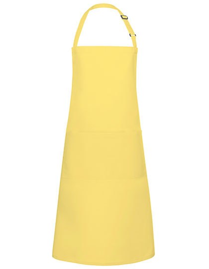 Köpergewebe, 215 g/m² | Latzschürze mit Bändern aus Schürzenstoff, mit Nahtsicherung | Latzband mit Schnalle zum stufenlosen Einstellen der Länge bis 70 cm | Aufgesetzte Tasche mit 2 Fächern (40 x 20 cm) | Waschbar bis 60°C