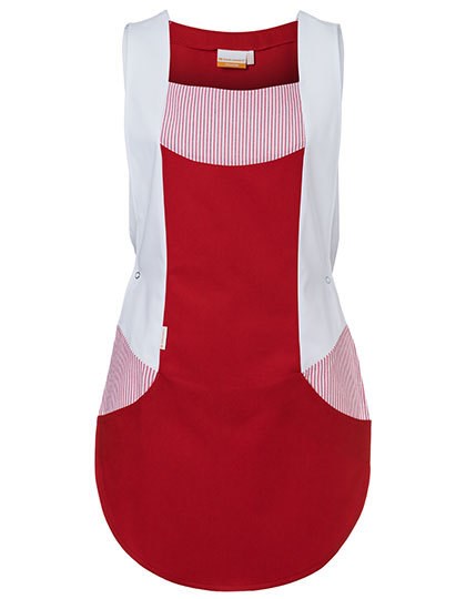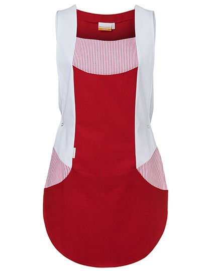 Leinwandgewebe, 180g/m² (gestreift) | Hochveredelt, gekrumpft, waschecht | Köpergewebe, 215 g/m² | Überwurfkasack für Damen mit Teilungsnähten | 1 verdeckte Tasche mit 2 Eingriffen | Seitlich mit je 2 Druckknöpfen zu verschließen | Rückenlänge bei Gr. I ca. 82 cm | Industriewäschetauglich | Waschbar bis 60°C