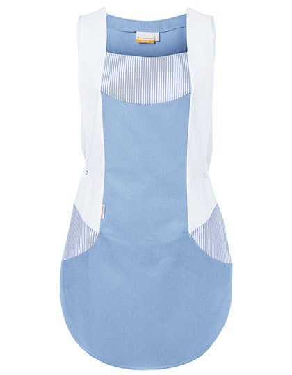 Leinwandgewebe, 180g/m² (gestreift) | Hochveredelt, gekrumpft, waschecht | Köpergewebe, 215 g/m² | Überwurfkasack für Damen mit Teilungsnähten | 1 verdeckte Tasche mit 2 Eingriffen | Seitlich mit je 2 Druckknöpfen zu verschließen | Rückenlänge bei Gr. I ca. 82 cm | Industriewäschetauglich | Waschbar bis 60°C