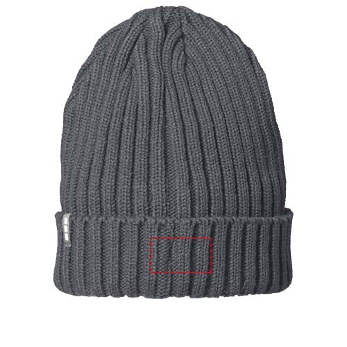 Spire Mütze. Schlaufenetikett mit Markenlogo. 2x2 Rippstrick, 100 % Acryl.