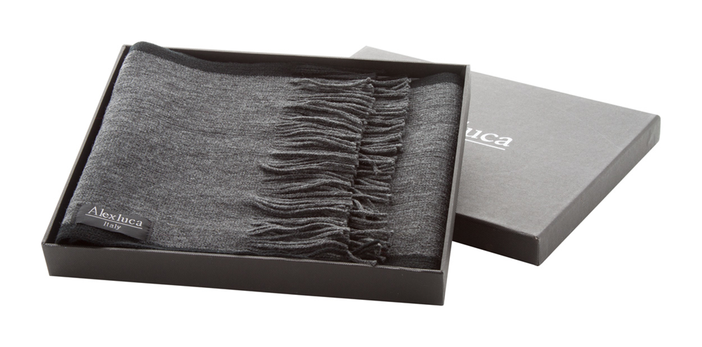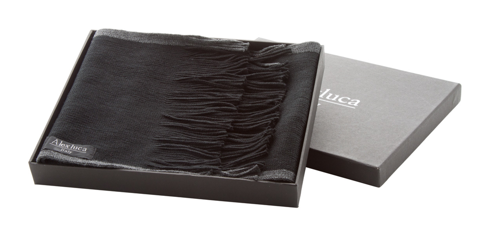 Herren-Schal aus Baumwolle und Viskose. Einzeln in schwarzer Geschenkbox. Marke: Alexluca.