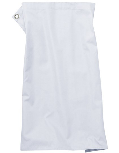 Bistroschürze mit zwei Ösen | Bänder mit Druckknöpfen auswechselbar (Bänder nicht im Lieferumfang enthalten. Das Bänderset finden Sie unter Artikel CGW42128) | Hochveredeltes Mischgewebe | Knitterarm | Strapazierfähig | Bis 95 °C waschbar | Industriewäsche- und finishertauglich