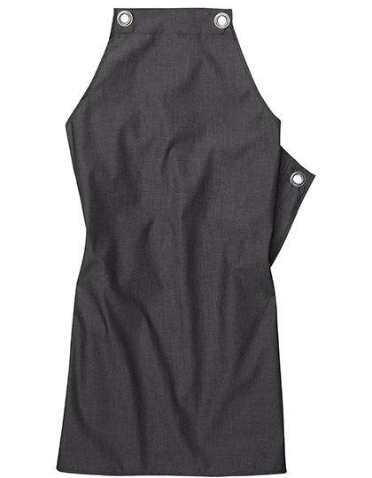 Latzschürze mit vier Ösen | Bänder mit Druckknöpfen auswechselbar (Bänder nicht im Lieferumfang enthalten. Das Bänderset finden Sie unter Artikel CGW42141) | Im Rücken gekreuzte Bänder zur Entlastung des Nackens und stufenlosen Verstellung | Besonders leichte Qualität | Elegant meliertes Gewebe | Strapazierfähig | Bis 95 °C waschbar | Industriewäsche- und finishertauglich