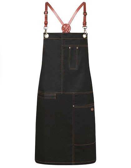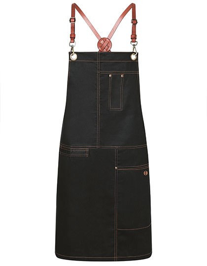 Köpergewebe, 273 g/m² | Waschecht | Latzschürze in Twill-Optik mit Kreuzträgern zur Entlastung des Nackens | Einfaches Abnehmen und Befestigen aller Bänder mit Hilfe von Karabinerverschlüssen | Schnallen zum stufenlosen Einstellen der Länge | Zusätzliches Taillenband zum Regulieren der Weite | Bronzierte Nieten und kontrastfarbige Steppnähte | Funktionale Bänder aus Echtleder | Praktische Stoffschlaufe auf der rechten Seite zum Befestigen eines Kassierhalfters oder Geschirrtuchs | Linksseitige Tasche (16 x 24 cm) und Stiftfach auf Brusthöhe | Waschbar bis 60 °C