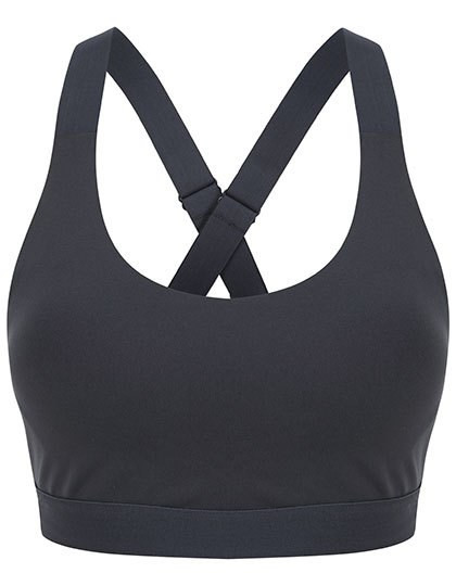 Sport-BH mit mittlerem Halt | Rundhals | Überkreuzte elastische Rückenträger | Elastischer Taillenbund | BH-Verschluss | Feste Körbchen | Abreißetikett
