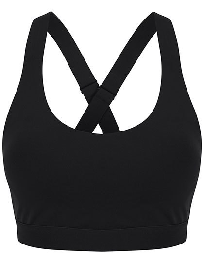 Sport-BH mit mittlerem Halt | Rundhals | Überkreuzte elastische Rückenträger | Elastischer Taillenbund | BH-Verschluss | Feste Körbchen | Abreißetikett