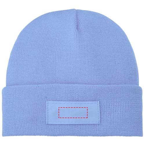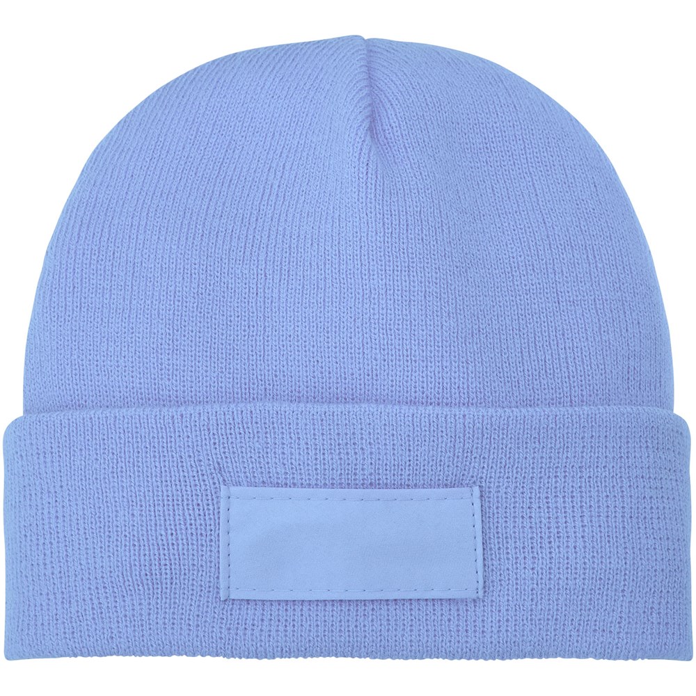 Einlagiger Beanie mit doppelt gefaltetem Rand. Aufnäher für die Werbeanbringung.