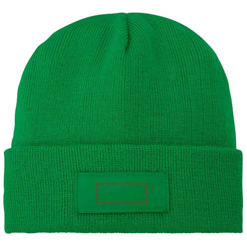 Einlagiger Beanie mit doppelt gefaltetem Rand. Aufnäher für die Werbeanbringung.