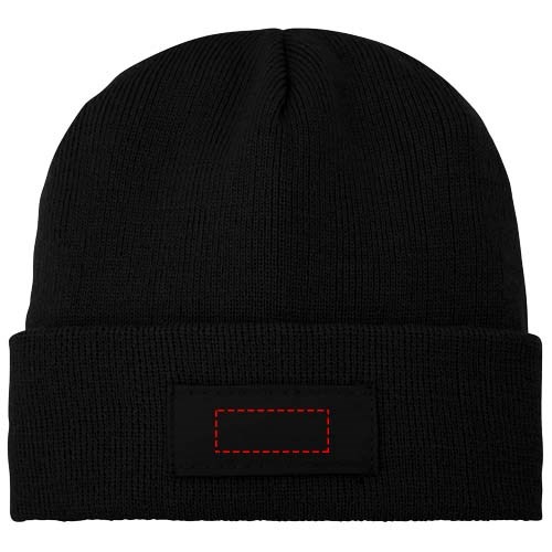 Einlagiger Beanie mit doppelt gefaltetem Rand. Aufnäher für die Werbeanbringung.