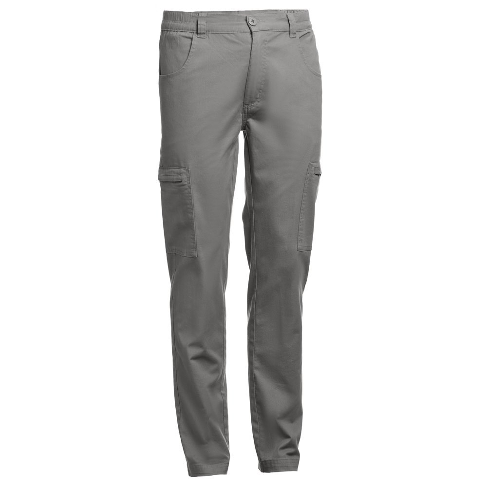 Herren Arbeitshose aus 98% Baumwolle und 2% Elasthan (240g/m²). Diese Hose hat 6 Taschen: 2 seitliche Reißverschlusstaschen, 2 Fronttaschen und 2 Gesäßtaschen. Bund mit einem seitlichen und elastischen Band. Größen: S, M, L, XL, XXL, 3XL