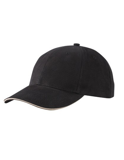 Hochwertig leichtes und weiches 6-Panel-Sandwich-Cap | Gebürstete Baumwolle | Clipverschluss in Mattsilber mit Metall-Öse | Sechs gestickte Luftlöcher | Sechs Ziernähte am Schild | Laminierte Frontpanels | Gefüttertes Satinschweißband