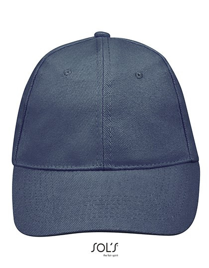 Sechs Segmente | Vorgeformter Schirm | Sechs umstickte Lüftungs-Ösen | Verstellbarer Rückenverschluss mit Metall-Schnalle | Schwere, gebürstete Baumwolle