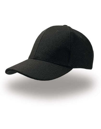 Sechs Einsätze | Abgesteppte Ösen | Strukturierter vorderer Einsatz | Vorgebogener Schirm | Verschluss mit Schnalle und genähter Öse | Vier Ziernähte auf dem Schirm | Polyester-Schweißband