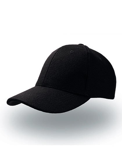 Sechs Einsätze | Abgesteppte Ösen | Strukturierter vorderer Einsatz | Vorgebogener Schirm | Verschluss mit Schnalle und genähter Öse | Vier Ziernähte auf dem Schirm | Polyester-Schweißband