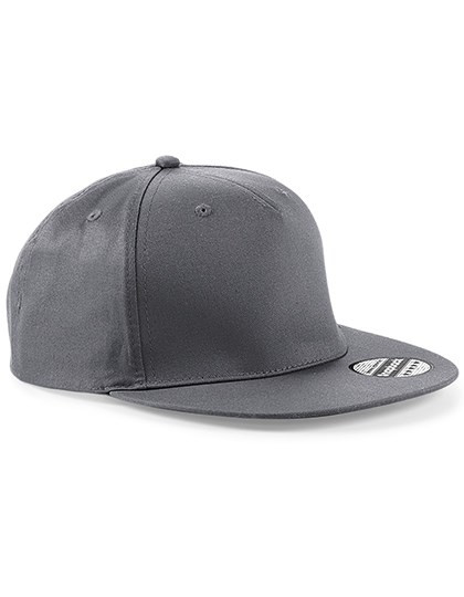 Snapback-Größeneinsteller im Retro-Stil | Style mit flachem Schirm | 100 % Baumwoll-Twill | Original Aufkleber auf dem Schirm | TearAway-Label für einfaches Neulabeln | Abgesteppte Belüftungsösen | 5-Panel-Design