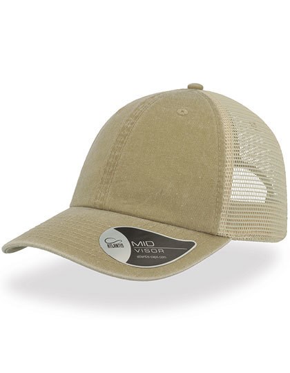 100% pigmentgefärbter Baumwolltwill, Seiten- und Rückenpanels: 100% Polyester | Trucker Cap | Mittleres Visier | Abgesteppte Ösen | 8 Ziernähte auf dem Schirm