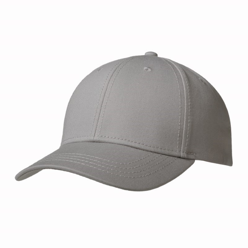 6 panel Cap mit Frontfütterung. Medium profile. Offener Metall buckle Verschluss mit Öse. Ausgeführt in cotton twill