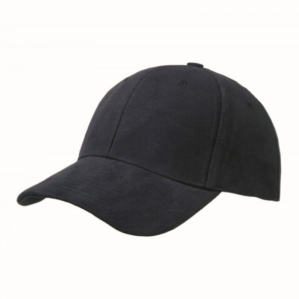 6 panel Cap mit Frontfütterung. Amerikanisches model. Offener Metall buckle Verschluss mit Öse. Ausgeführt in cotton, heavy brushed