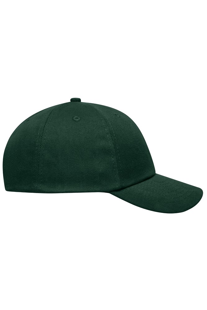6 gestickte Luftlöcher 8 Ziernähte am Schild Stirnanliegend Gefüttertes Satinschweißband Größenregulierung durch "click & snap" Verschluss Heavy brushed Cotton.